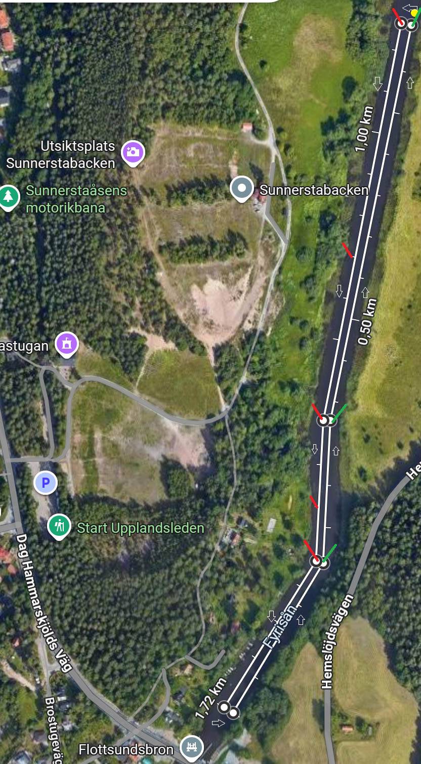 P.g.a för hårda vindar på Ekoln finns en alternativ bansträckning för långloppet med start (intervallstart) och mål vid flottsundsbron. Banan körs två varv moturs. Kortloppet K1 500 meter ställs in. Däremot kör vi K2 kortlopp med lottade besättningar efter långloppet.